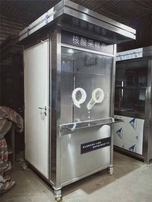核算采樣亭是一款專為咽擾子和鼻拭子取樣工作設計的產(chǎn)品,設備通過配置的通風凈化系統(tǒng)將潔凈安全的空氣送入內(nèi)部空間,并使內(nèi)部保持相對正壓狀態(tài),通過構建隔離的正壓空間,從而使艙體內(nèi)部空氣與外艙隔離,避免外艙空氣進入艙體內(nèi)部,進而有效保護內(nèi)部醫(yī)護人員的安全,避免其因采樣工作而受到感染,保證安全的同時,提升保護人員操作靈活性和舒適度,節(jié)省了檢測時間,提高了檢測效率。