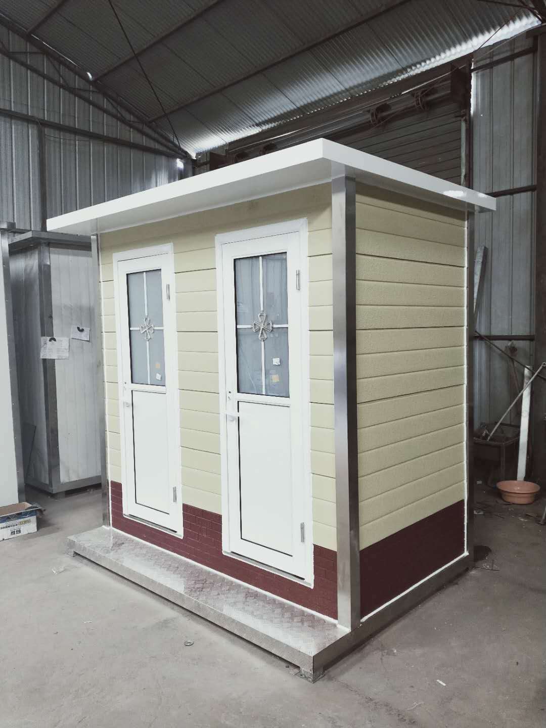 簡介—— 2020新款鋼構金屬雕花板衛生間,水沖式廁所,移動方便,環保干凈。